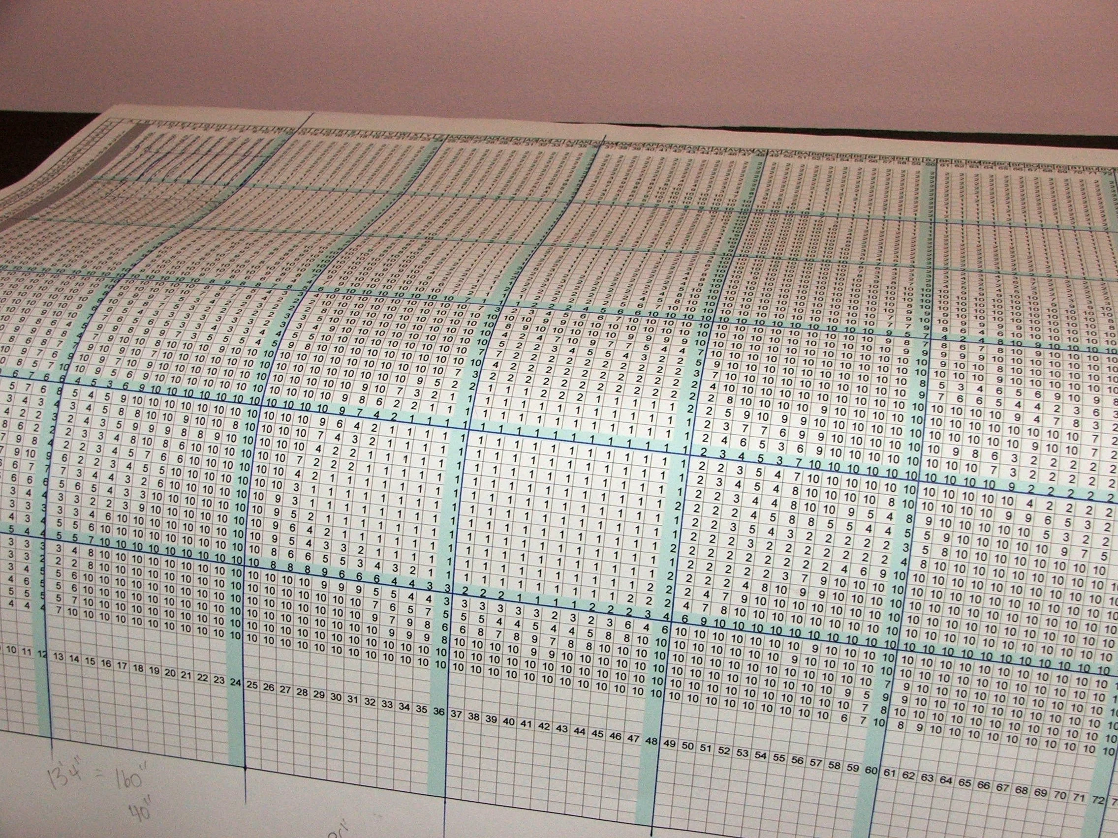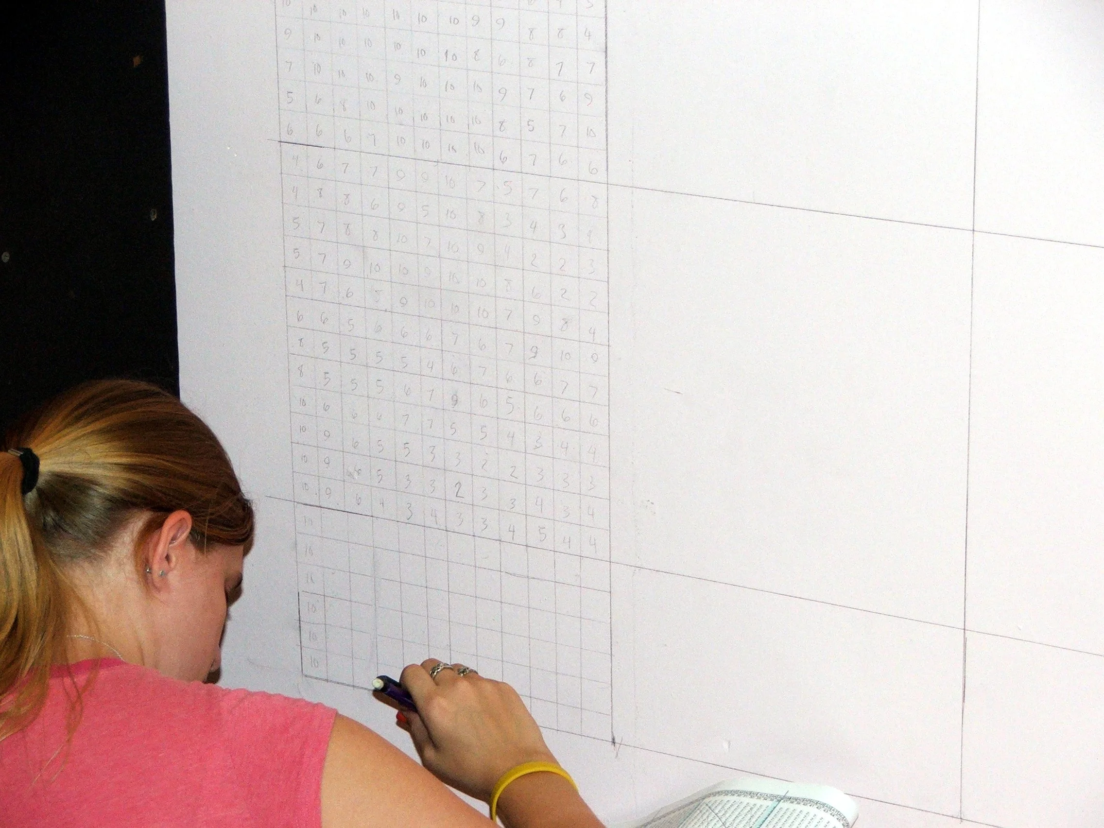 We had this idea for a mural in my parents’ home. I took an image of the Mona Lisa, converted it to grayscale, and then ran the mosaic filter in Photoshop to create 5,280 blocks. I pulled the black values from each block, and entered that into an Excel spreadsheet, which we used to transfer the mural onto the wall. By mixing two shades of interior house paint, we effectively created a 5’ wide paint by numbers.